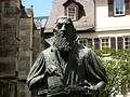 Kip Primoža Trubarja pred cerkvijo Sv. Amanda v Bad Urachu. Foto: Dario Prasl